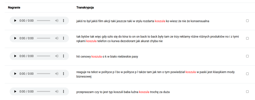 Zgromadzone nagrania zostały przekształcone do postaci tekstowej z wykorzystaniem technologii automatycznego rozpoznawania mowy, a wybrana część zasobu poddana została ręcznej korekcie, co umożliwia prowadzenie analiz wymagających wysokiej jakości danych. Materiał uzupełniono o zestandaryzowane metadane opisujące każde nagranie oraz warstwy anotacyjne wspierające jego przetwarzanie i przeszukiwanie. Istotnym elementem opracowania jest również segmentacja nagrań na spójne jednostki wypowiedzi, umożliwiająca ich powiązanie z transkrypcją oraz analizę struktury dialogów. Dodatkowo dane zostały opatrzone informacją gramatyczną zgodną z praktyką Narodowego Korpusu Języka Polskiego, co pozwala na formułowanie zaawansowanych zapytań i prowadzenie pogłębionych analiz językowych. Połączenie warstwy dźwiękowej, tekstowej, anotacyjnej i metadanych tworzy spójny zasób badawczy, stanowiący podstawę analiz współczesnej polszczyzny mówionej.